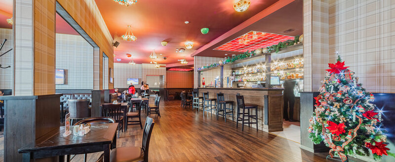 Тут гости могут весело провести время в компании друзей, поиграть в бильярд и боулинг, продегустировать разные сорта пива и насладиться настоящей Шотландской кухней. А стильный дизайн из дерева и натуральной кожи — особая гордость Паба.