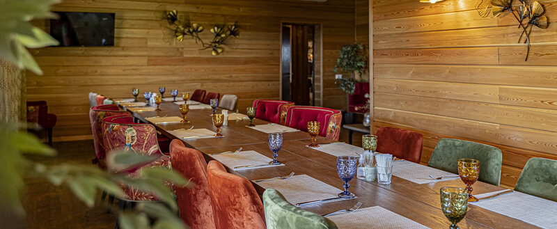 Изысканная русская кухня, красивейшая посуда, уютная атмосфера — всё это в себя вмещает ресторан. Площадь ресторана 350 м², в котором находятся 2 зала, вместимостью 70 и 20 человек, которые полностью изолированы друг от друга. Идеально подходит для комфортного ужина, встречи друзей, романтического вечера, деловых переговоров. Свадьба в таком интерьере пройдёт незабываемо.