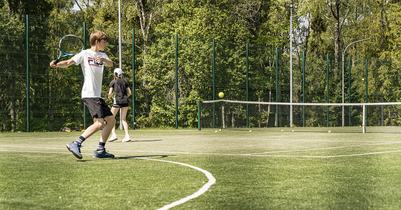 2. К вашим услугам открытый теннисный корт, готовый к эксплуатации. Вне зависимости от уровня подготовки, возраста и пола с профессиональными тренерами вы сможете освоить эту динамичную игру.